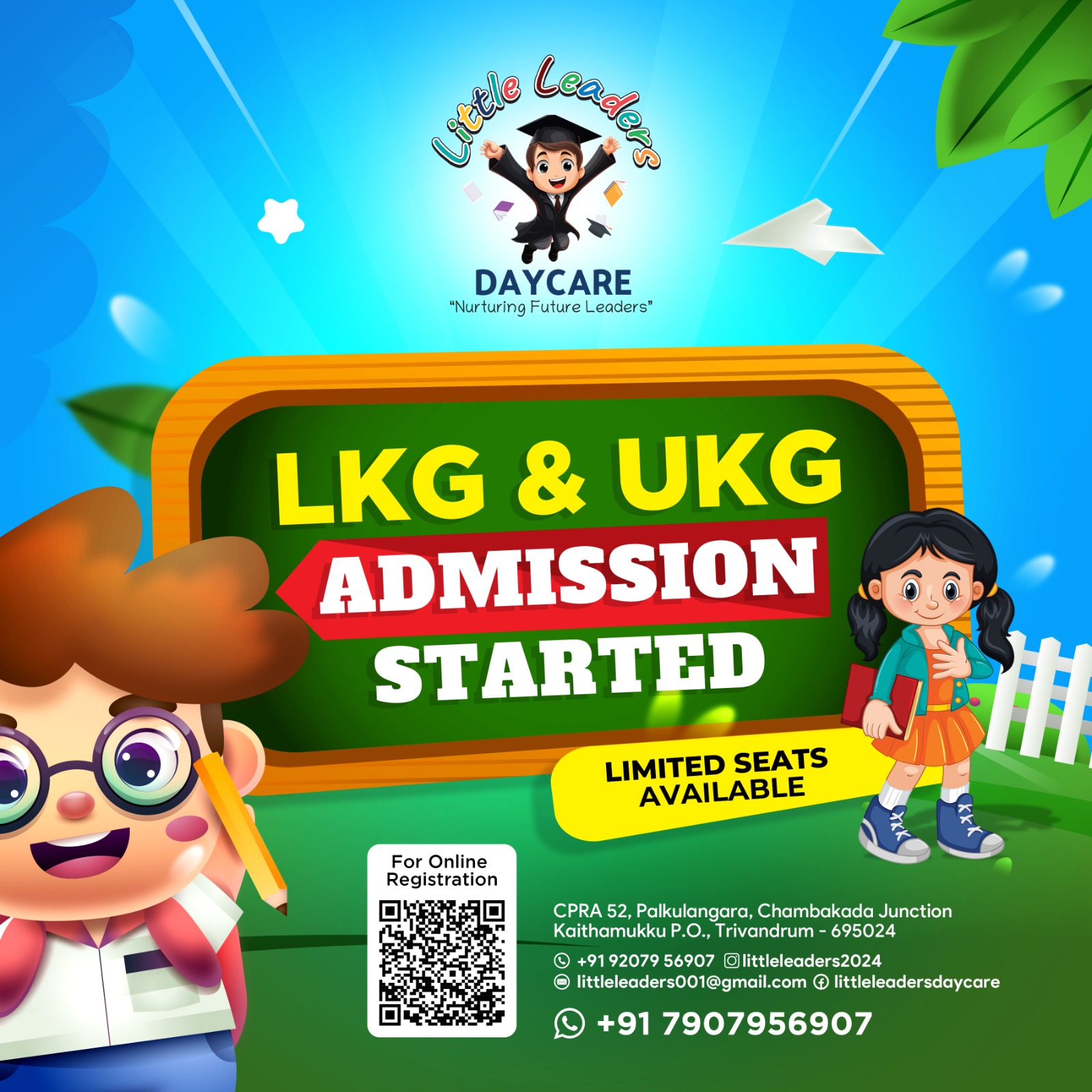 Leadership skills begin with lots of learning, playing, adventure and fun. Little Leaders playschool and daycare will practice an open-ended learning environment. Our experienced teachers will guide your child through several exiting and fun-filled educational and learning activities. Being one of the leading and best playschools in Trivandrum our learning framework provide several age-appropriate activities to trigger and improve your child’s visual, auditory, tactile and kinesthetic skills.